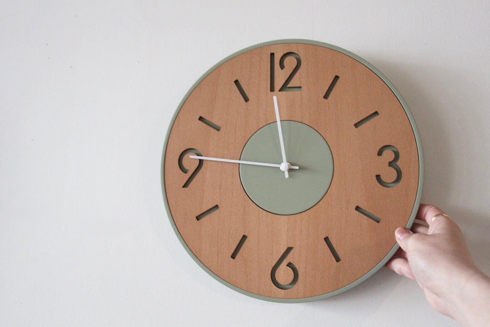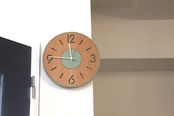 木製の文字盤にくすみカラーの組み合わせがオシャレな