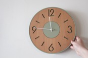 ナチュラルテイストの時計。くり抜かれた数字が特徴的。