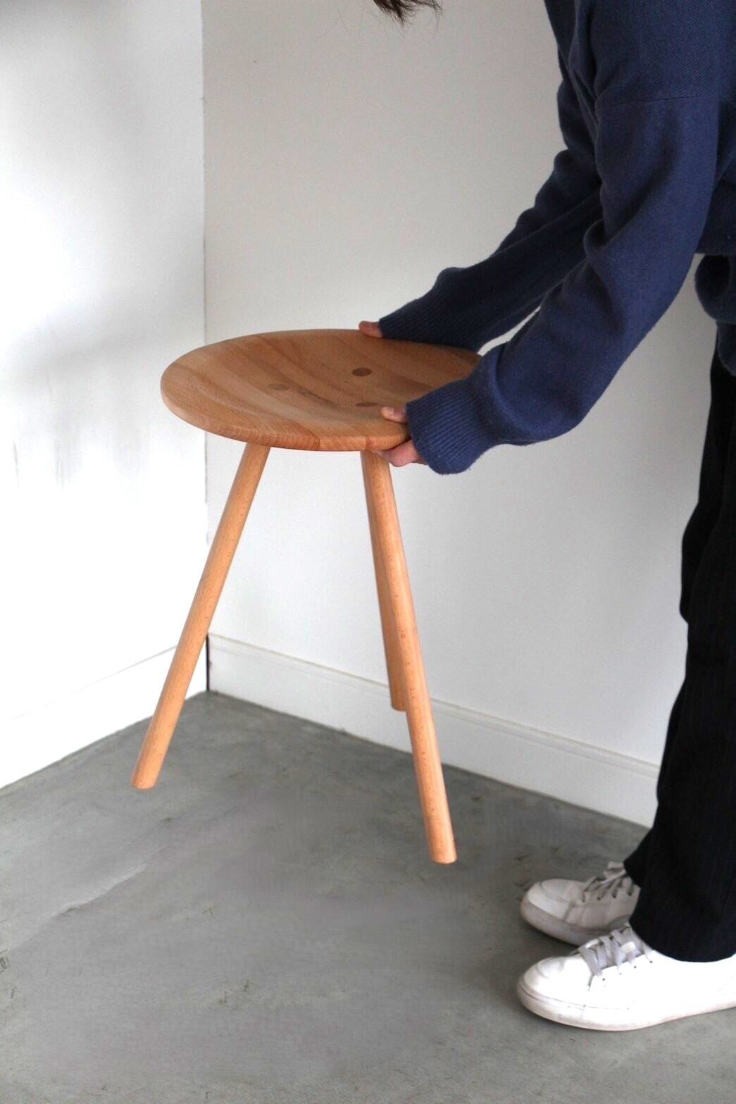 岡山県で活躍するコーチカズノリさんがデザインした3本脚スツール。すっきりとした座面で横から見ると美しいスツール。