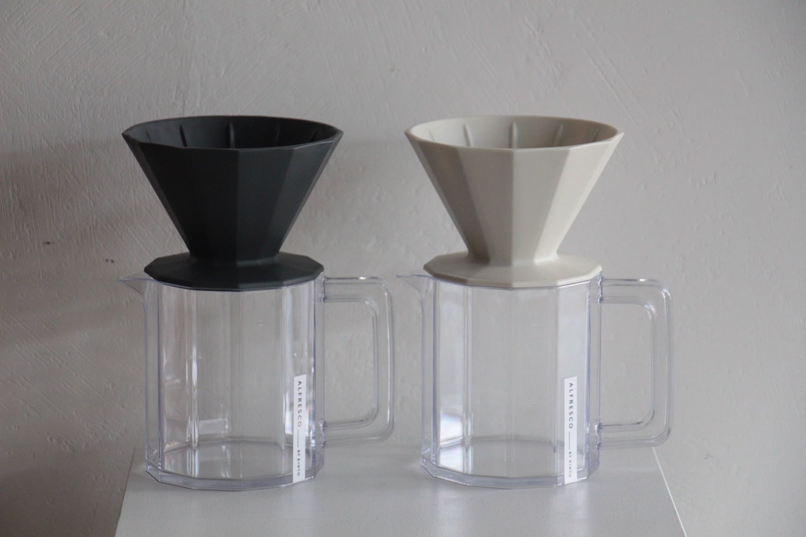 樹脂でできているようには見えないALFRESCOシリーズのコーヒージャグセット入荷しております。落ち着いたカラーでまるで陶器のような見た目でキャンプなどのアウトドアシーンでも大活躍。20枚のペーパーフィルターもおつけします。