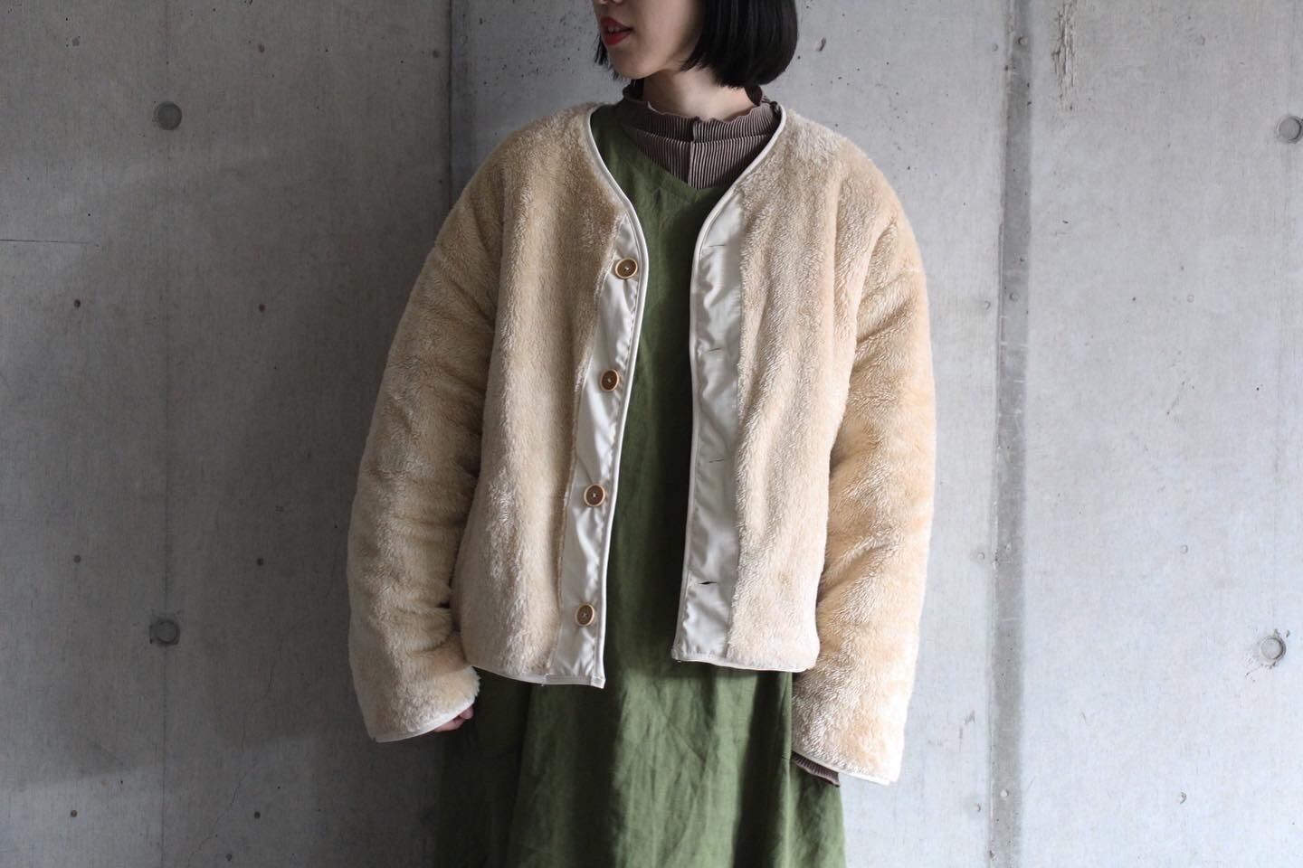 裏返してボア素材で着ても可愛いアウターです。