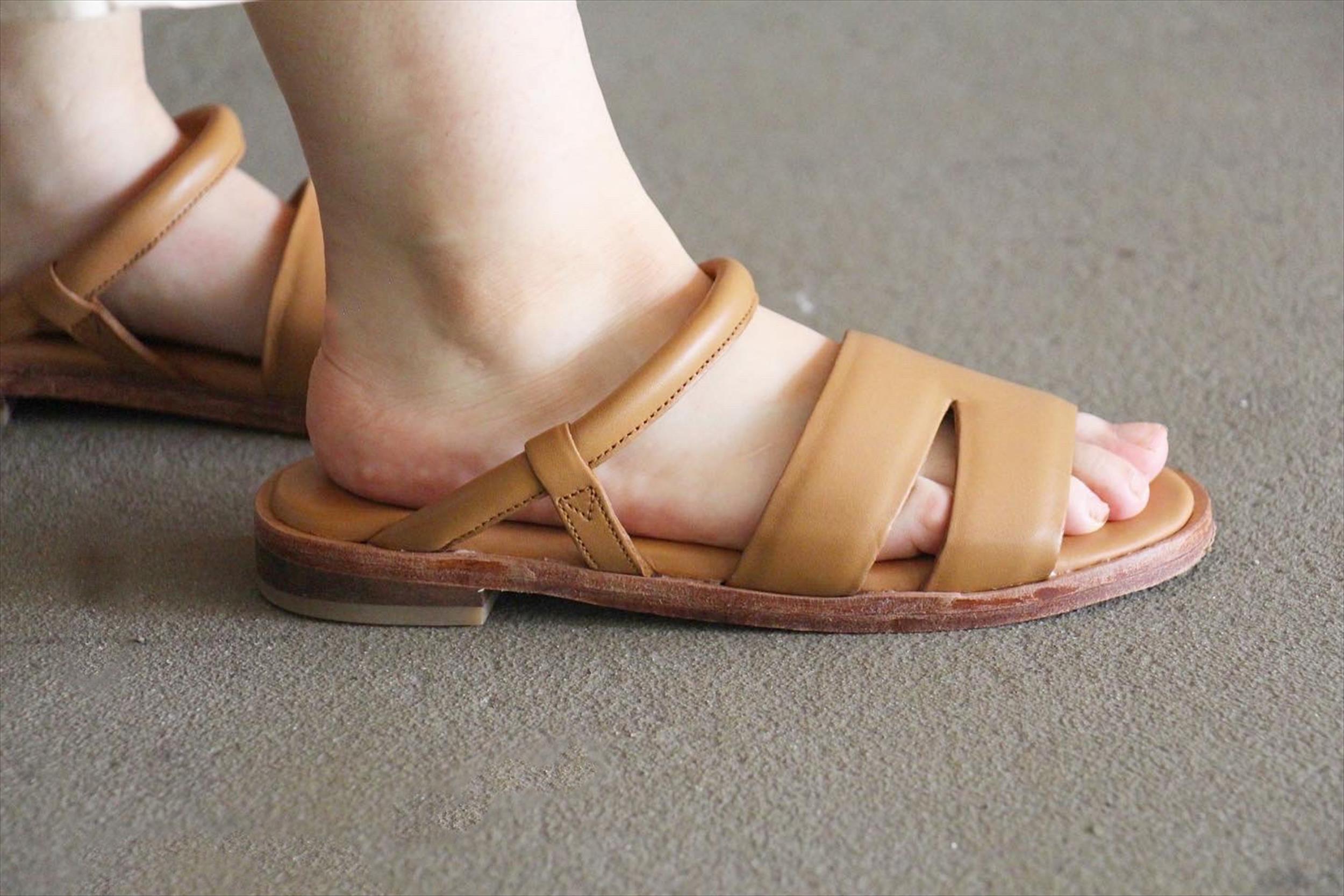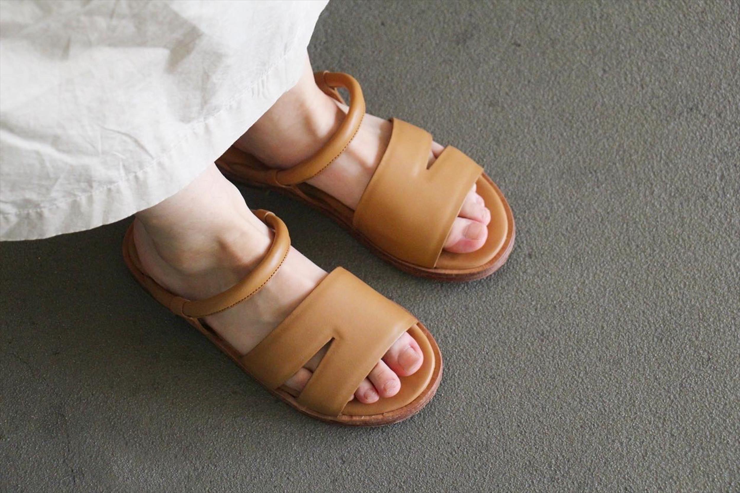 フラットソールで軽い履き心地のレザーサンダル。