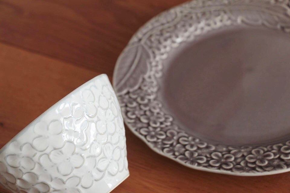 プレートのリム部分やボウルの周りに立体的に