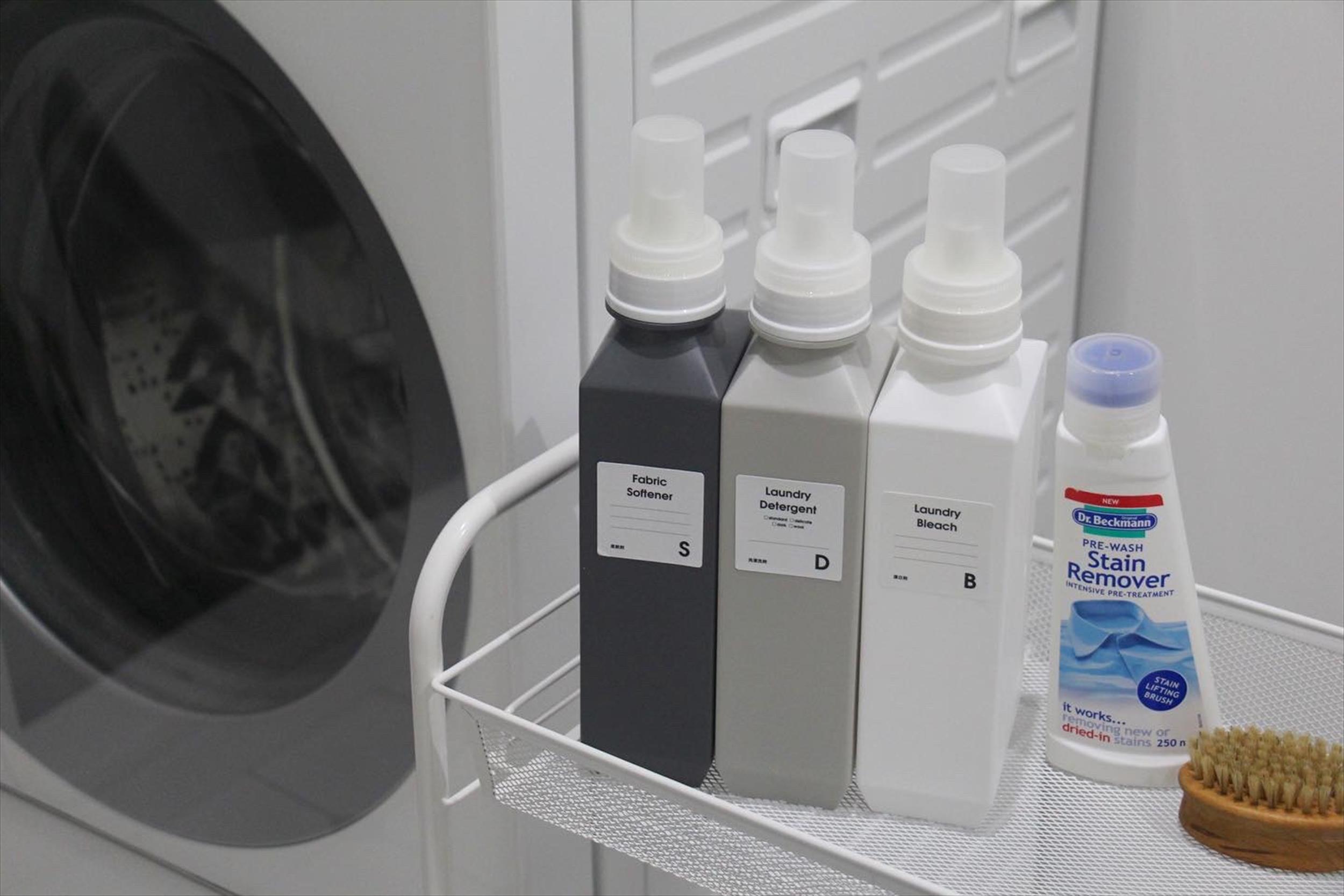 生活感をあまり感じさせないシンプルなランドリーボトル。