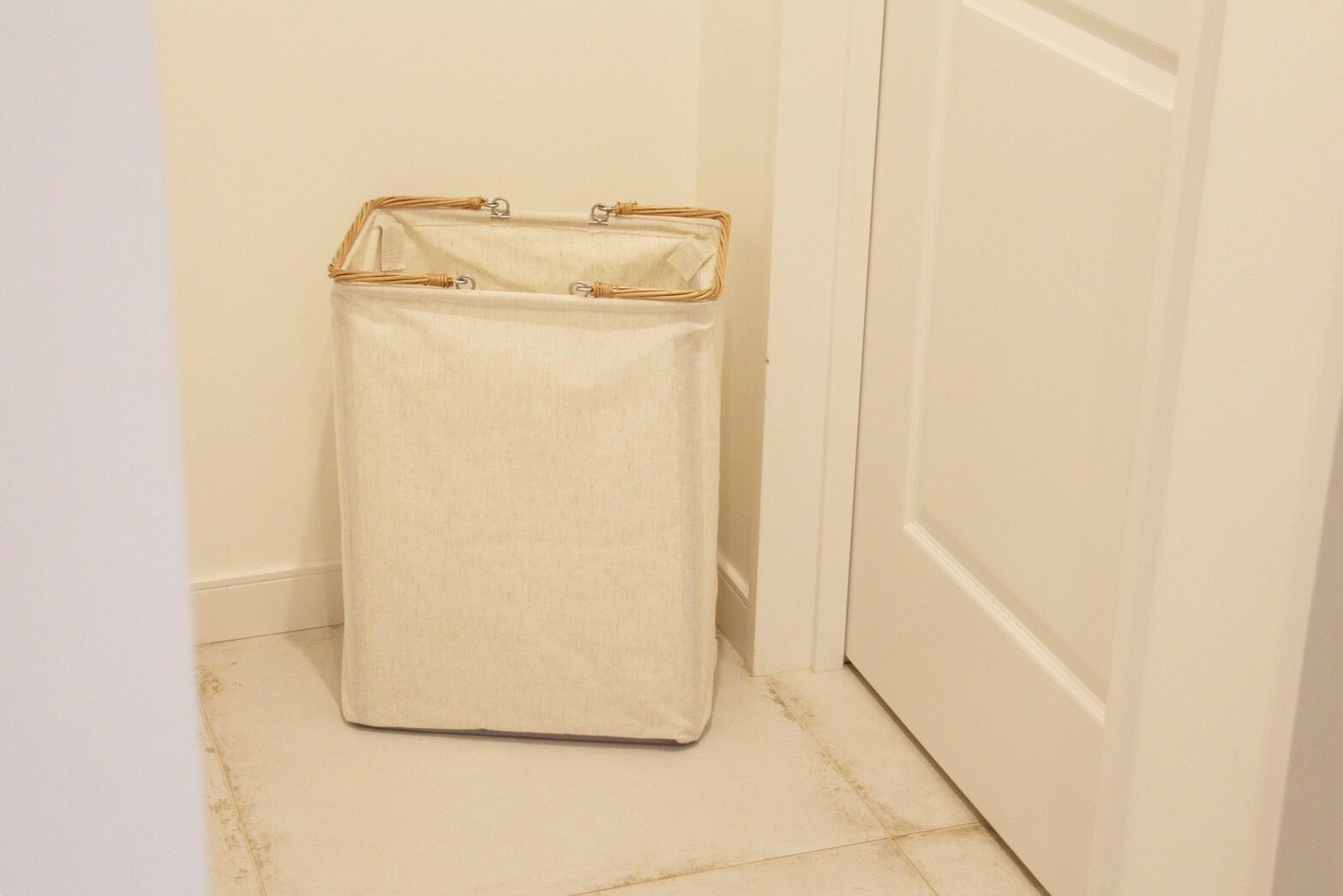 コットンリネンと柳を組み合わせた縦型バスケット。