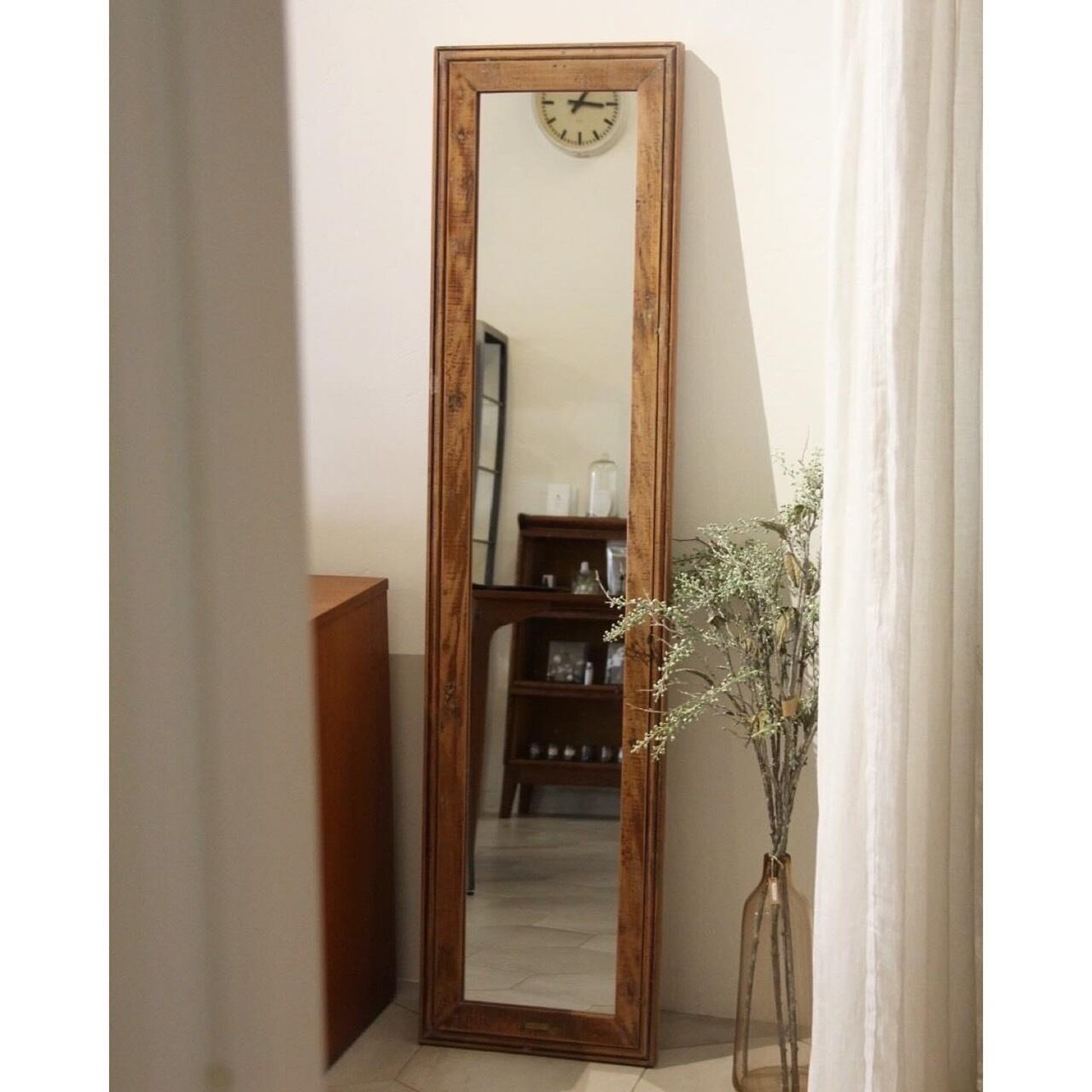 フレームは古材を使用して作られた味のあるオシャレな鏡です。