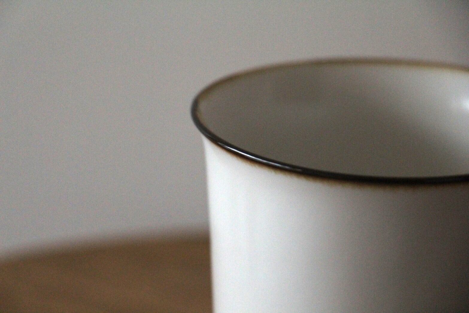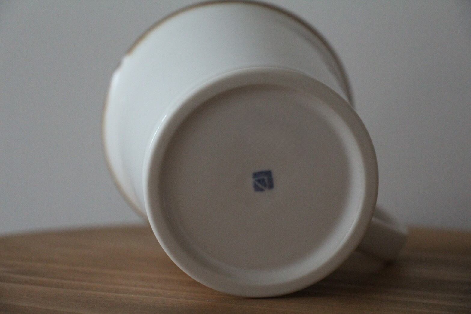 薄く、軽く、堅く丈夫に焼きしめられた磁器のマグカップ。