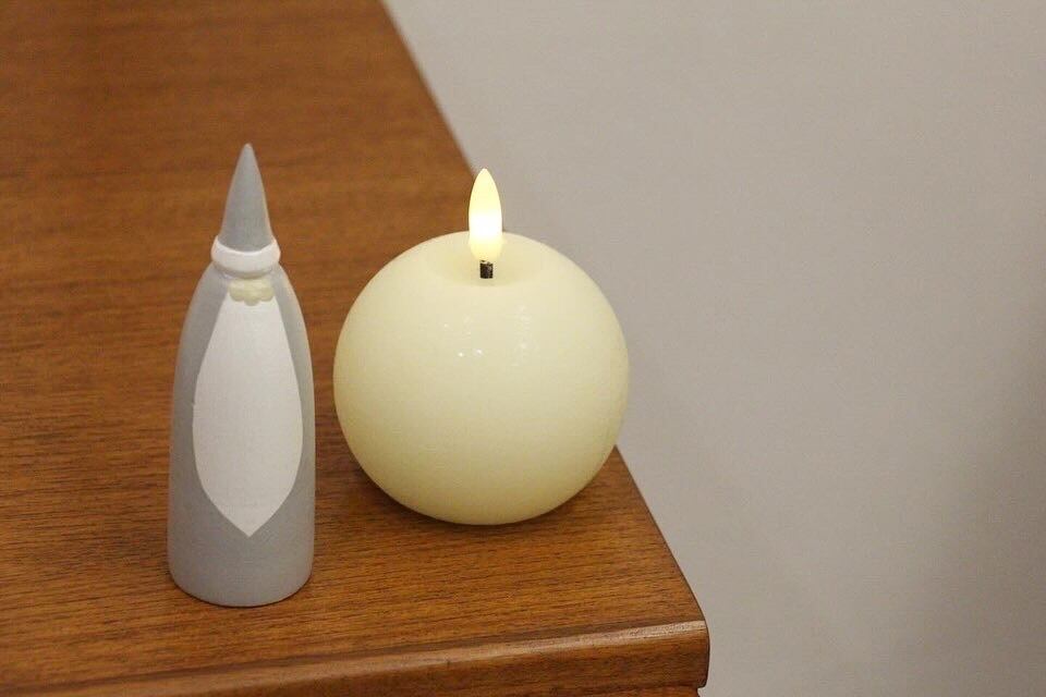可愛らしいサンタのオブジェですが、大人ぽっくインテリアに