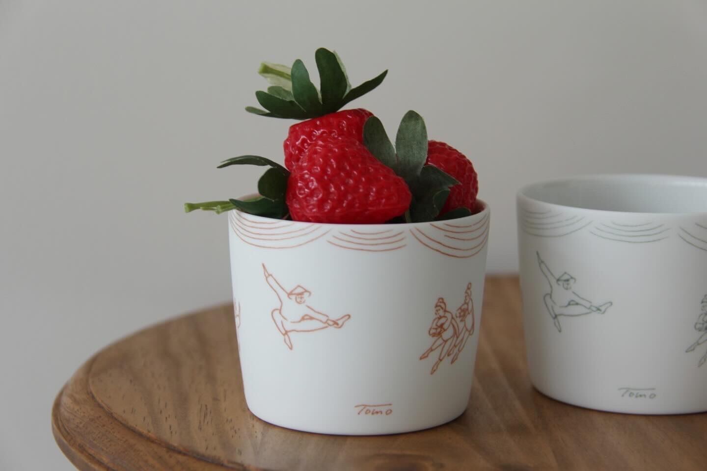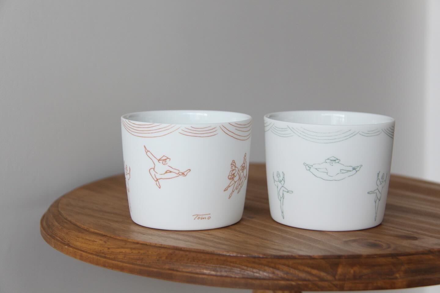 しっとりとした肌触りの白磁にtomotakeさんがデザインした踊る人達を釉薬で描いて