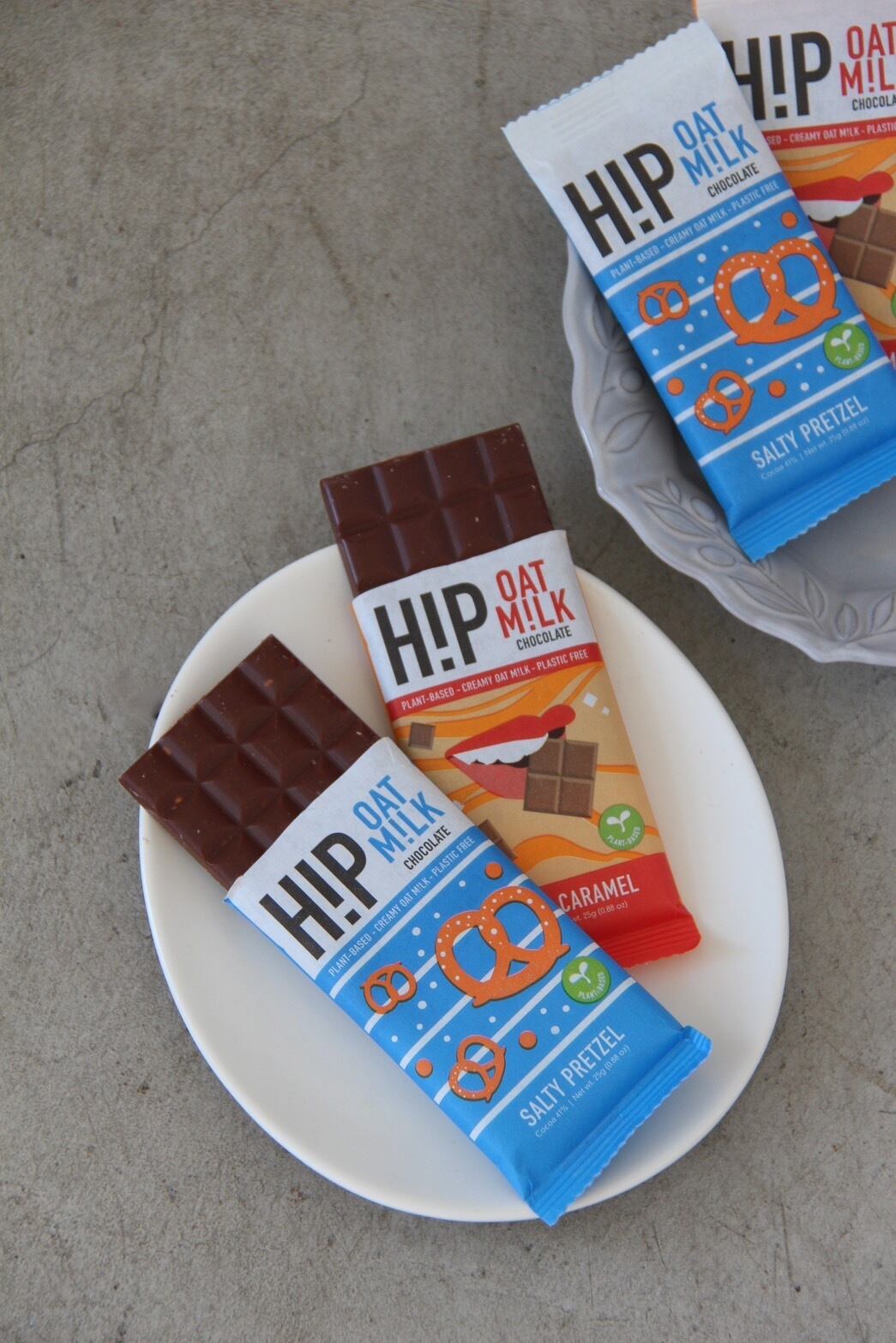 ヴィーガンチョコレート。ソルティプレッツェルとソルティキャラメルの2種類の味が入荷しております。