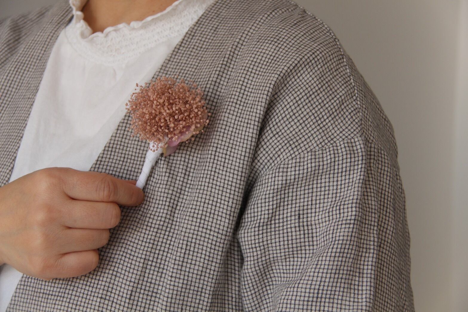 cokia marbleさん(@cokia_marble)さんにコサージュを作って頂きました。可愛い色味で今回はホワイトとくすみピンクのコサージュをご用意。裏はアーティフィシャルフラワーを施していただき裏側まで可愛くして頂きました。卒業式や入学式などフォーマルなシーンにワンポイント付け足すのにオススメです。